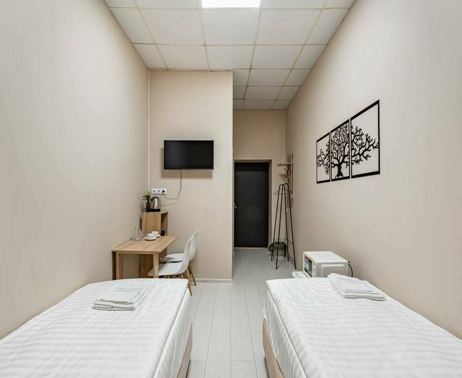 Однокомнатные номера. Одна двуспальная или две односпальные кровати, диван, журнальный столик и ванная комната